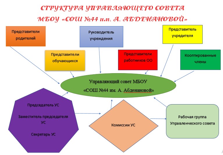- Структура управляющего совета - с указанием наименования всех действующих комиссий и рабочих групп управляющего совета;